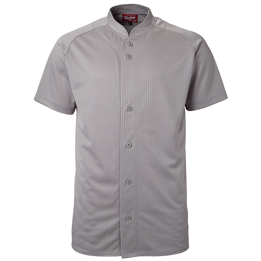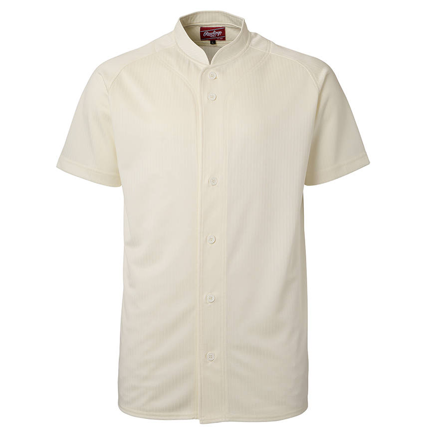ブライトストライプ素材のフルボタン小衿付きシャツ