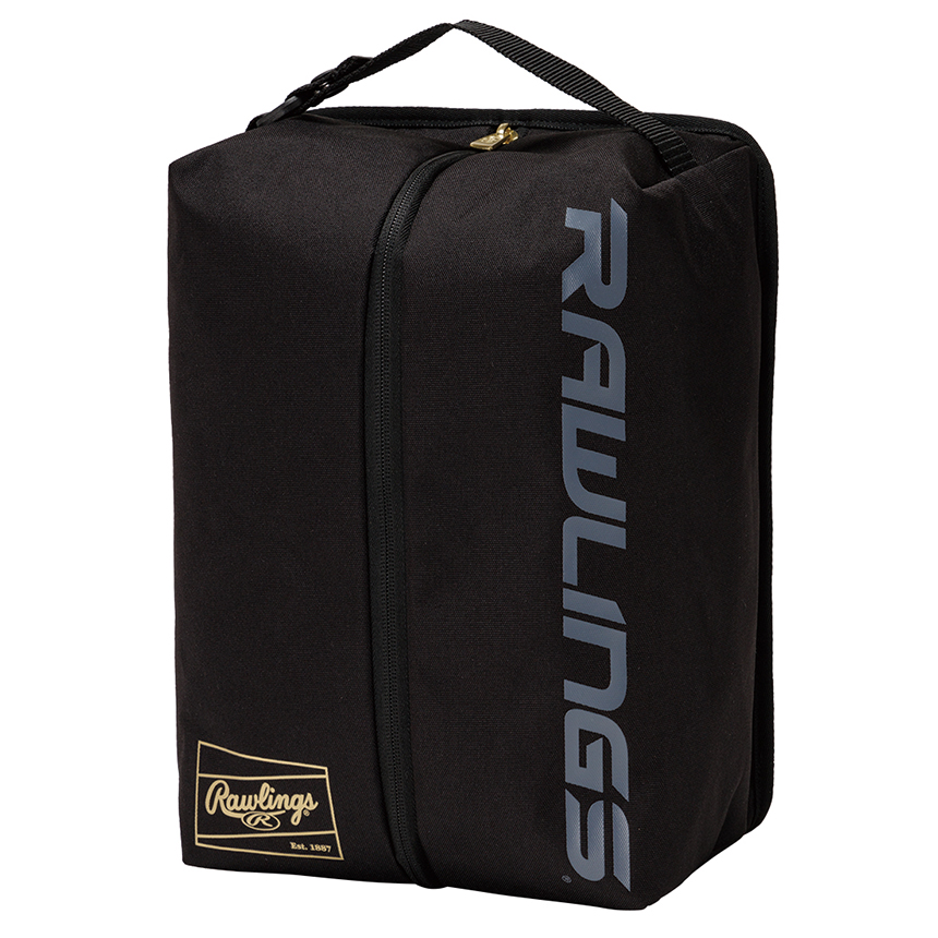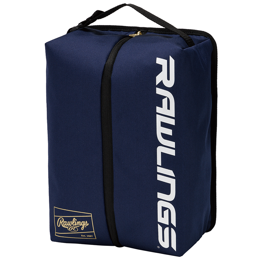 合皮コンビのシューズケース 、メッシュポケット付き、ゴールドロゴプリント、ゴールドファスナー引手
