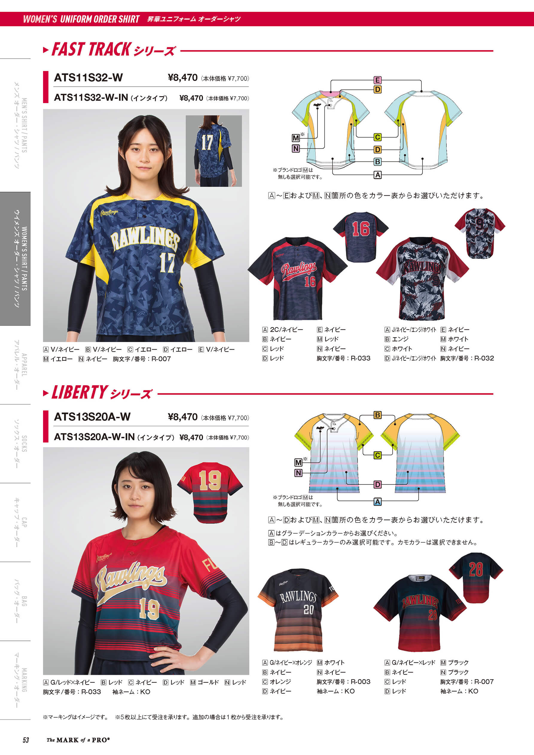 <ウィメンズ昇華ユニフォーム オーダーシャツ>